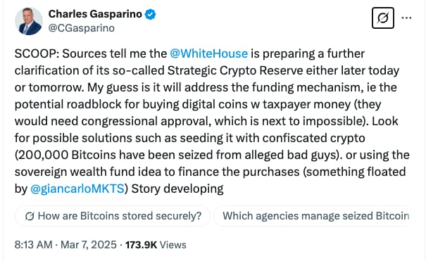 Reserve Composition: Funded with seized Bitcoin assets (roughly 200,000 BTC)