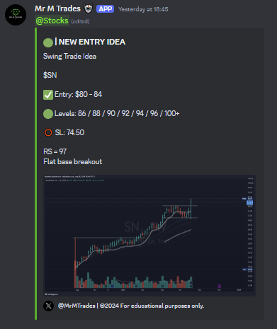 One of our sharpest analysts, Mr. M, just dropped a juicy swing trade idea in the TradingLab community that you don’t want to miss. We’re talking about SharkNinja, Inc. ($SN) – a stock that's been on an absolute tear, and with recent earnings, it’s showing no signs of stopping.
