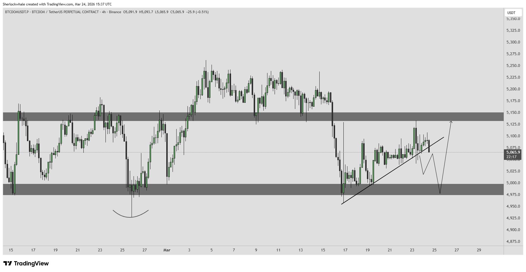 Entry Trigger: BTC dominance rejection at 5130–5140 resistance