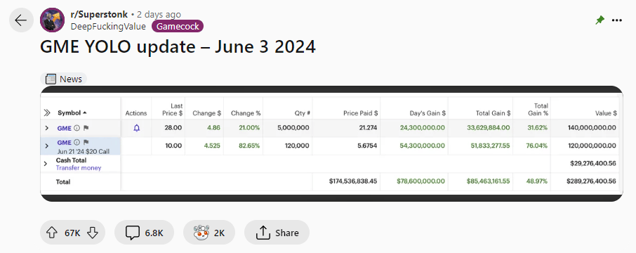 Historical Context: The last update from Gill in April 2021 showed him holding 30.94 million shares and $3.54 million in cash. This historical context adds credibility to his recent claims and stokes the flames of the GameStop saga.