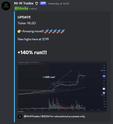 Roaring Kitty’s massive $290M GameStop stake has reignited frenzy, and the market’s buzzing—get the lowdown on this wild ride. Plus, check out Mr. M’s bold call on $MLGO, hitting every target and ending with a mind-blowing +140% gain.