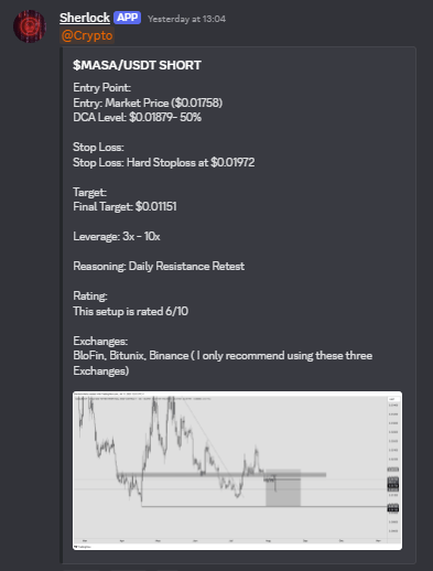 In the meantime? Sherlock’s been printing. $MASA short, TP2 hit, 14.5% in the bag. If you were in the Lab, you caught it live.