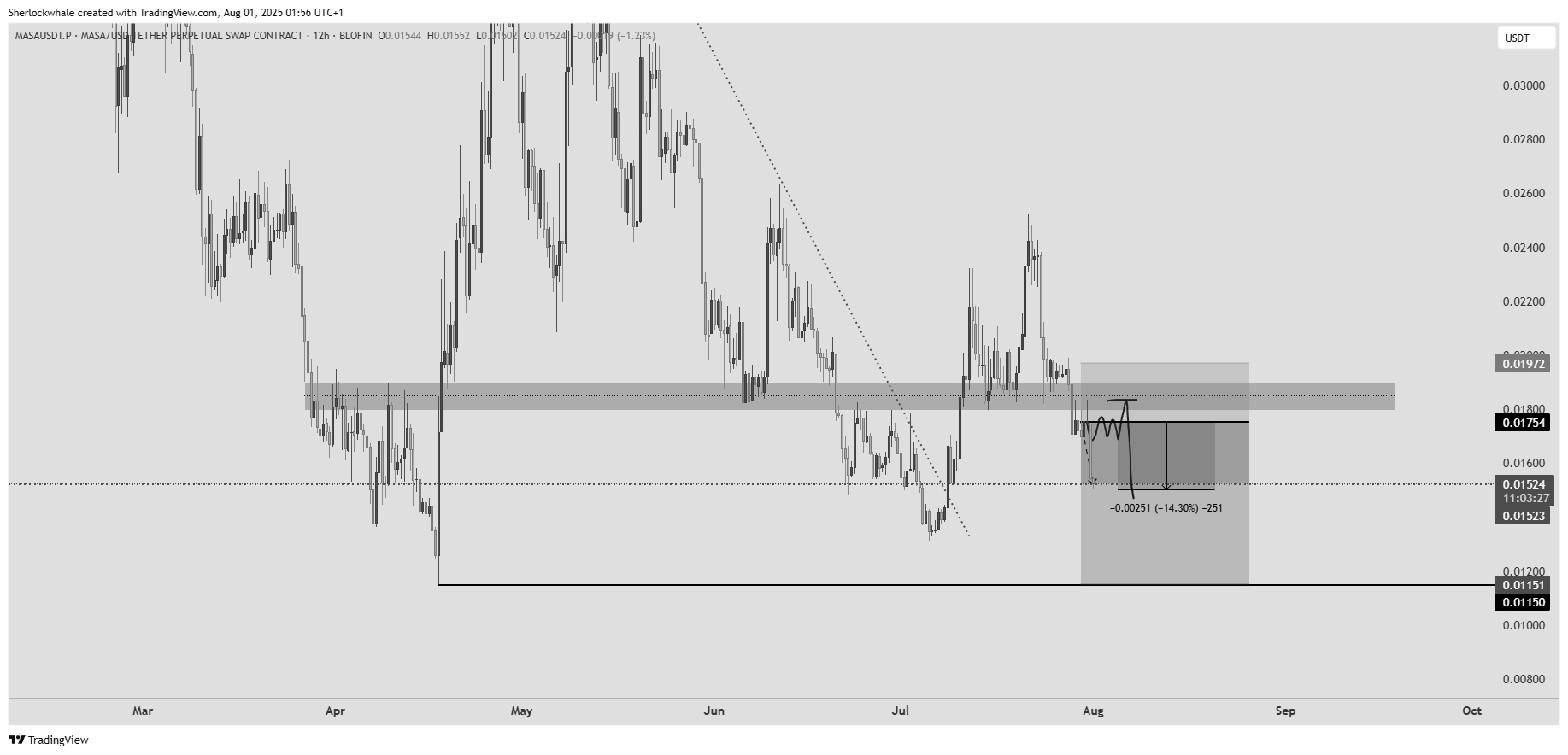 Masa (MASA) has been fading hard after a failed breakout attempt above key daily resistance. On-chain and macro sentiment are both risk-off right now: