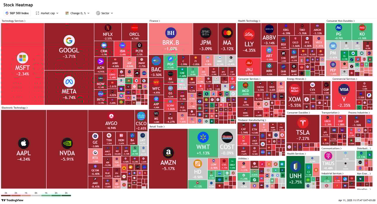 Thursday’s gains got wiped fast after Trump doubled down on his tariff game, clarifying that he’s not just raising tariffs to 125%, but that’s on top of a previous 20% hike. So yeah… math.