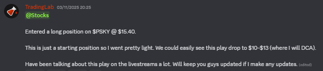 We opened a long on $PSKY as an early position. Nothing oversized yet, just enough skin in the game to ride the next leg up if momentum hits.