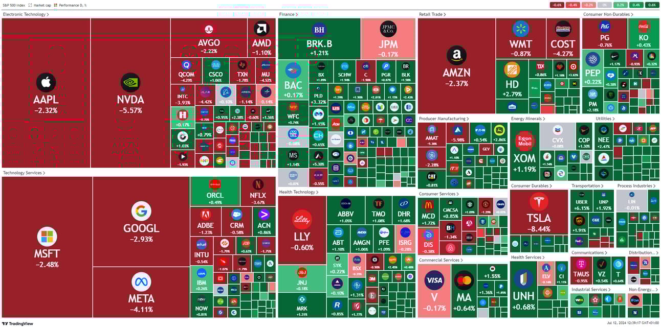 Despite the cooling inflation data suggesting a slowdown in the U.S. economy, it wasn't enough to keep tech stocks afloat. The CPI announcement revealed easing price pressures, which led to a dip in Treasury yields and ramped up expectations for future interest rate cuts.