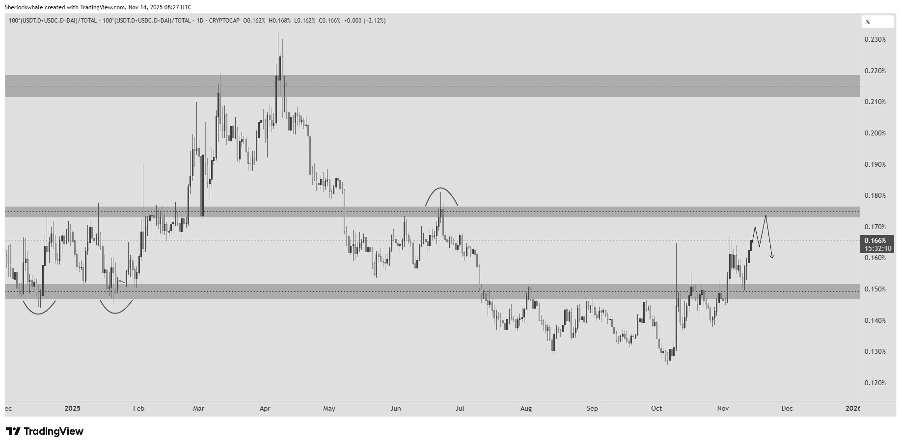 Trigger: Stablecoin-dominance index climbing into 3.7%–4% resistance